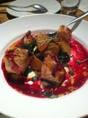 The first course was a beautiful presentation of grilled octopus with micro basil, red onion marmalade and saba, which is a balsamic reduction.  Michael paired the octopus with a lovely Costamolino Vermentino di Sardegna.